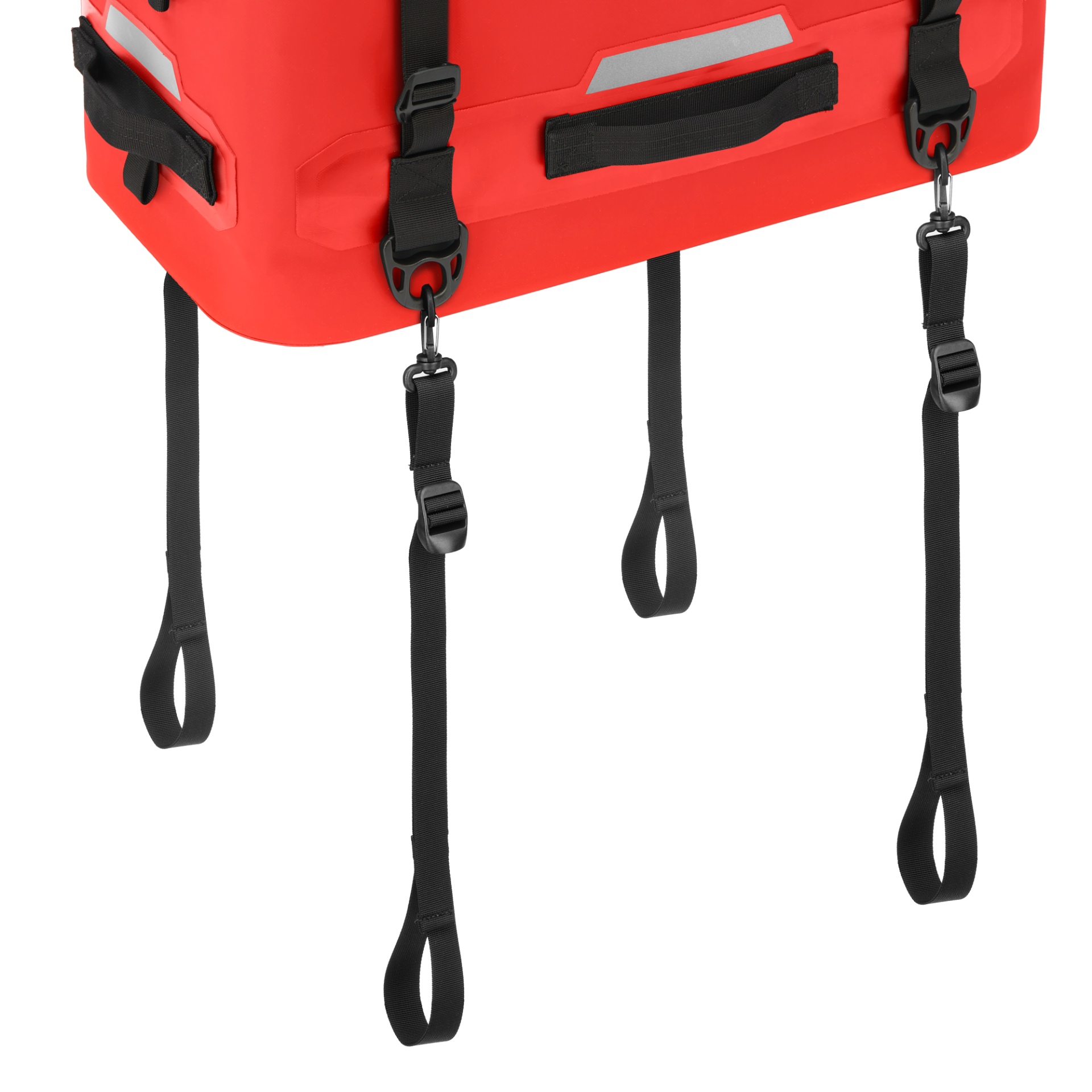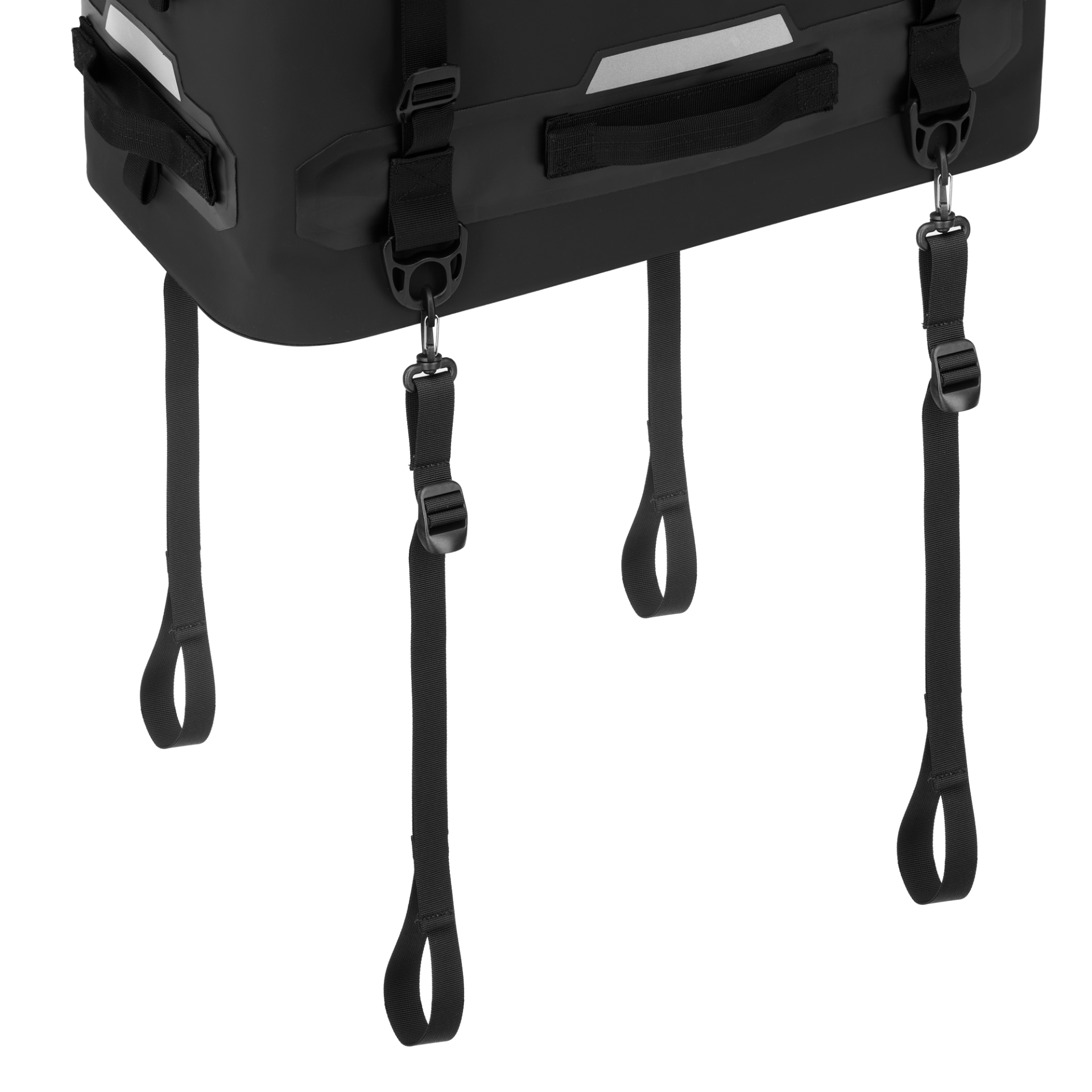 MOLLEシステムで小物の追加装着が可能。さらに、4本の固定用フックと専用ストラップで車体にしっかり装着できます。