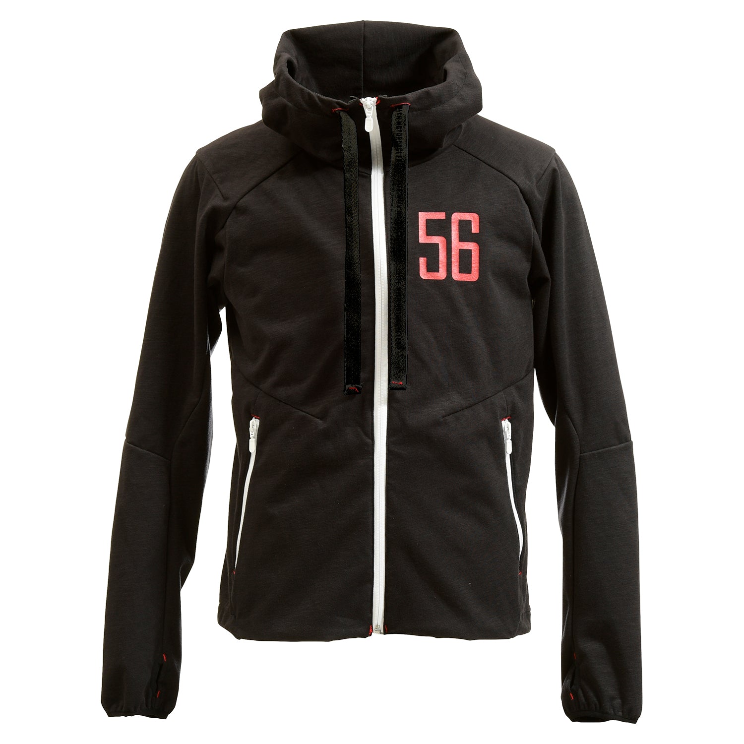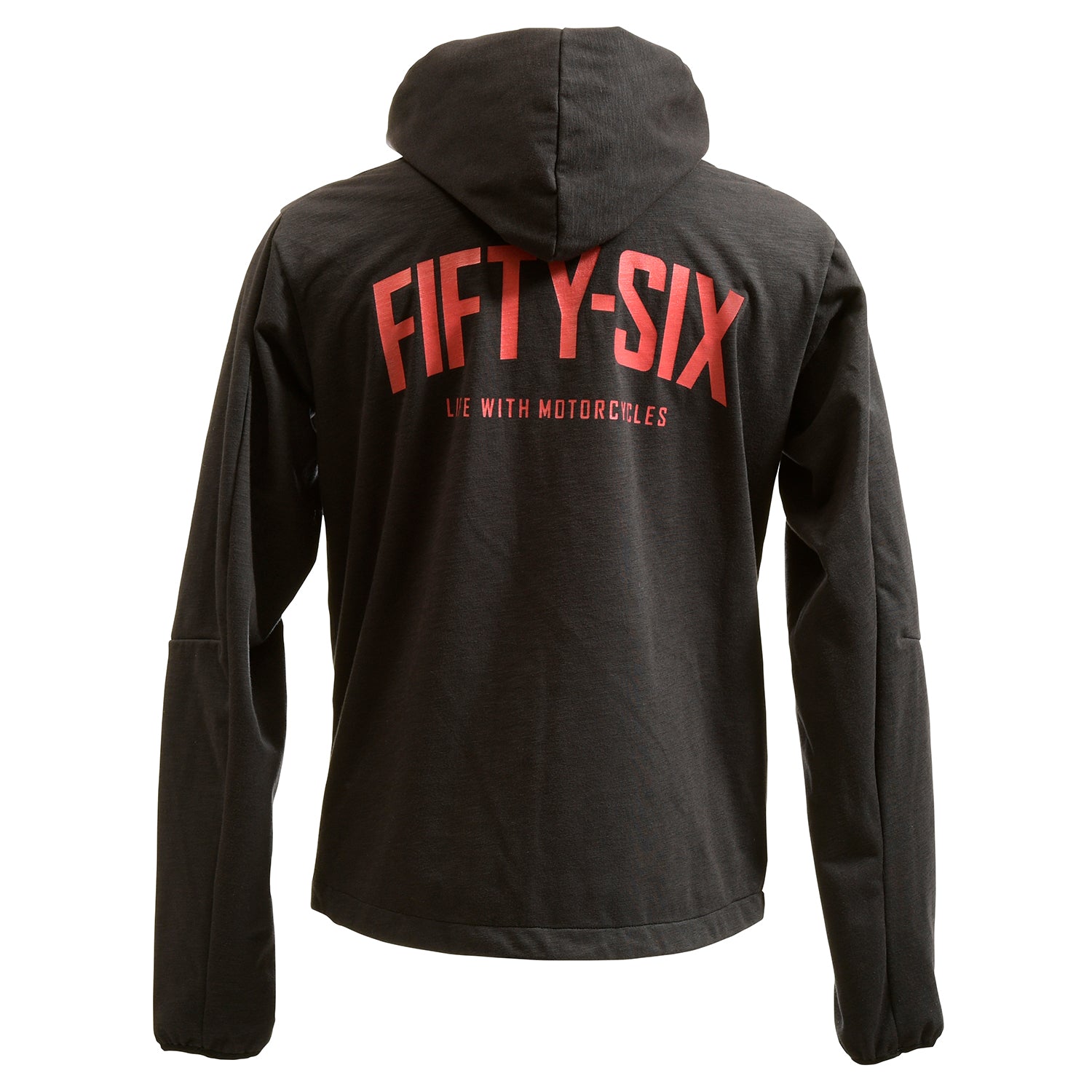 通常は温度調節のためにアウターとインナーの間において利用されることの多いミッドレイヤーですが、胸元の56と背中に大胆な FIFTY-SIX のプリントをあしらうことで、アウターとしてのシーンも見込める一年を通して活躍できる、まさにユーティリティーなパーカーです。